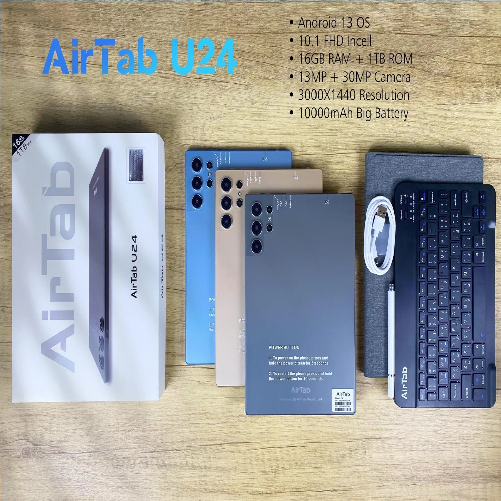 Air Tab U24 تابلت أنيق وسريع الأداء، يتميز بشاشة واضحة، بطارية تدوم طويلًا، ومعالج قوي يناسب الدراسة، العمل، الترفيه وتصفح الإنترنت بسهولة.