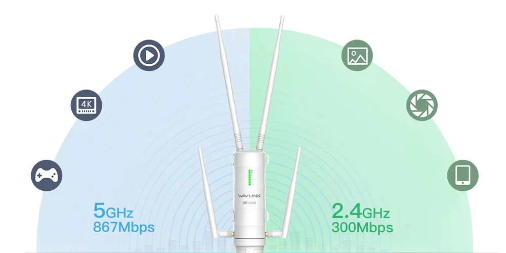 جهاز WAVLINK عالي الطاقة للشبكات الخارجية WAVLINK جيجا هرتز 5 جيجا هرتز