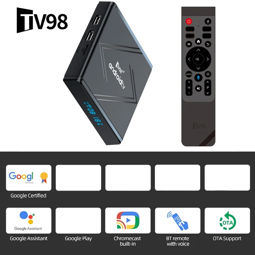 صندوق تلفزيون TV98 ATV Pro Plus Android 14 BT5.0 مشغل وسائط Allwinner H313 جهاز تحكم عن بعد صوتي 4G 5G واي فاي مزدوج 6 HD 8K 4K جهاز فك التشفير iptv