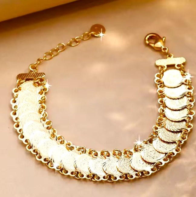 عرض 2 سوار سلسلة عملات أفريقية مطلي بالذهب