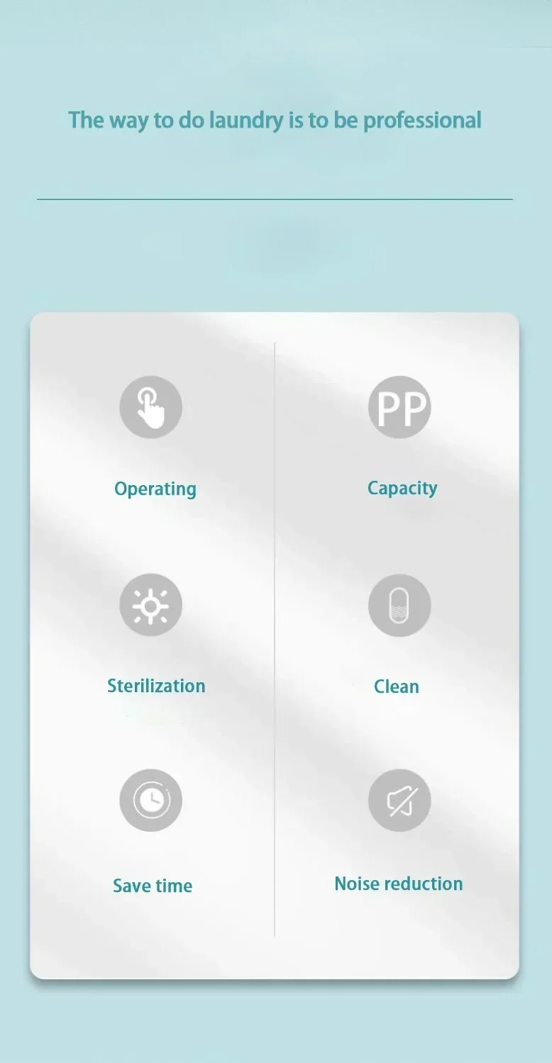 وظيفة عملية: قد تحتوي بعض الغسالات أيضًا على وظائف مضادة للبكتيريا بالضوء الأزرق ومضادة لبكتيريا الأوزون وغيرها من الوظائف، والتي يمكن أن تقتل البكتيريا والعث بشكل فعال على الملابس الداخلية والعناية بالصحة.