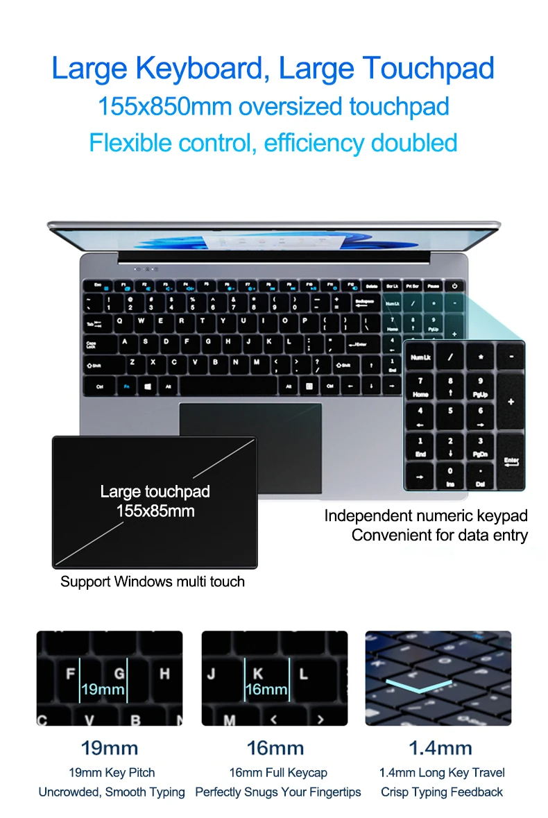 كمبيوتر محمول جديد 15.6 بوصة Intel 6500Y 32GB RAM 2TB SSD Windows 11 5000mAh لوحة مفاتيح بإضاءة خلفية بصمة مكتب كمبيوتر محمول للألعاب