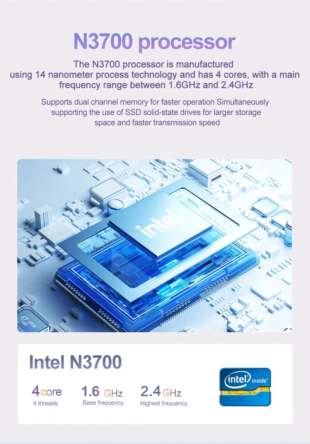 | علامة/طراز وحدة المعالجة المركزية | إنتل بنتيوم N3700 |